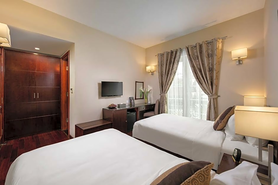 This room is fitted with 2 private balconies offering city views, a cable flat-screen TV and personal safe. A tea/coffee making facility and mini-bar are included. Room with a bathtub can be requested but it is subject to availability. Decoration for honeymoon can be made upon request.